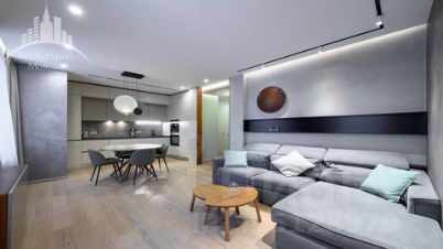 В квартире выделены 2 изолированные комнаты: спальня + детская (кабинет), просторная кухня-гостиная, совмещенный санузел, техническая комната (постирочная), небольшой холл. При ремонте использовали качественные дорогостоящие материалы: мраморные подоконники, инженерная доска, итальянские двери Union, сантехника Villeroy&Boch, осветительные приборы Vibia. Квартира полностью укомплектована мебелью и техникой для комфортного проживания, в том числе вместительный шкаф при входе, большой шкаф-купе в спальне, встроенный шкаф в детской (кабинете), стиральная и сушильная машины Samsung, кондиционер Daikin, SmartTV, духовка с функцией свч и встроенная кофемашина Siemens, посудомоечная машина Bosch.
