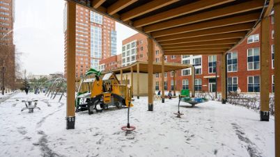 Территория ЖК огорожена, современный двор без доступа автомобилей с детскими площадками и зонами отдыха.