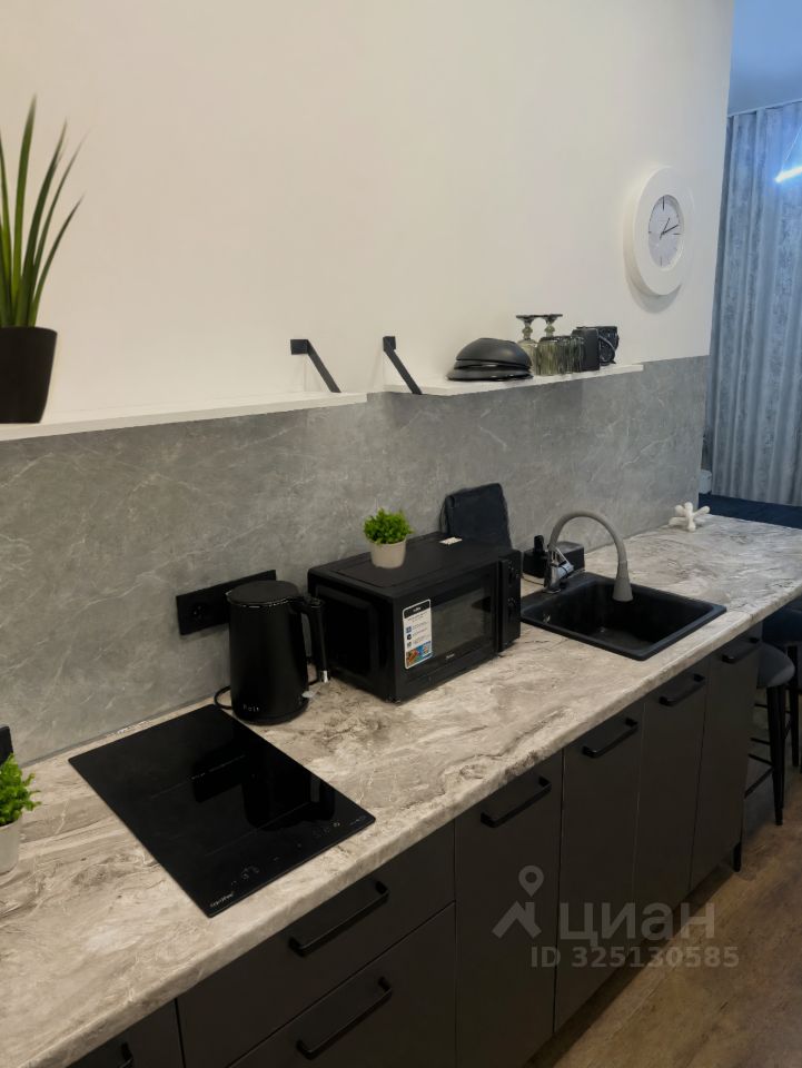 - Кухня с холодильником, плитой, микроволновкой, чайником и посудой