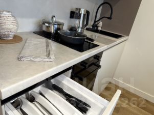 Кухня: встроенный гарнитур с посудомоечной машиной, варочной поверхностью, духовым шкафом, микроволновой печью, холодильником, электрическим чайником, а также вся необходимая посуда и столовые приборы, фильтр для питьевой воды с обратным осмосом.