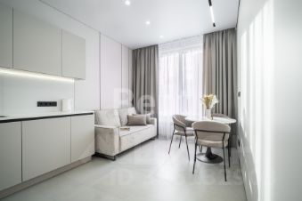 Дополнительные удобства: Кондиционер, тёплый пол в зоне кухни и прихожей, видеозвонок и видеодомофон. В прихожей — большое зеркало с подсветкой.