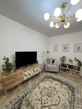Квартира оборудована всей необходимой техникой - стиральная и отдельная сушильная машина, электрический полотенцесушитель, кондиционер, телевизор, очиститель воздуха, посудомоечная машина, духовой шкаф с функцией СВЧ, фильтр, диспоузер. Раскладное кресло в гостиной как дополнительное спальное место.
