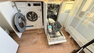 В квартире установлен: кухонный гарнитур, стиральная машина, посудомоечная машина, диван, гардеробная