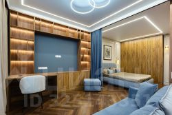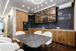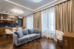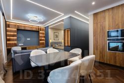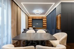Апартамент с эксклюзивным интерьерным решением в современном стиле, качественной отделкой, большим количеством встроенных шкафов, встроенной качественной авторской мебелью и техникой для жизни от ведущих брендов: встроенные холодильник и морозильник Liebherr, посудомоечная машина, варочная панель, духовой шкаф, СВЧ-печь, вытяжка Haier. В кухне-гостиной кондиционер Haier. В постирочной комнате установлены стиральная и сушильная машины Haier. Вся сантехника и освещение в апартаменте - премиального уровня.