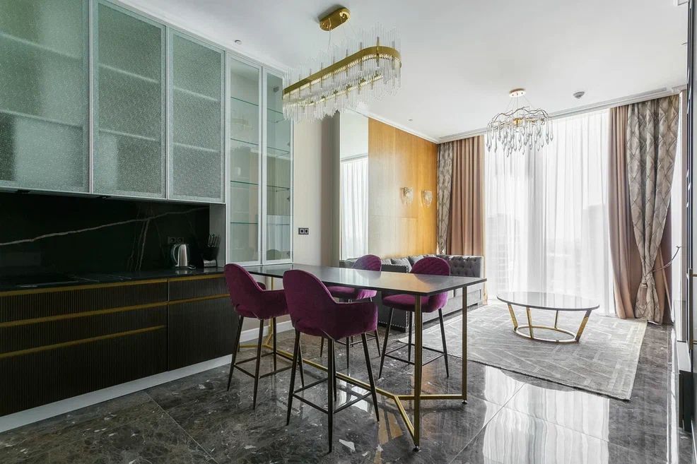 В шаговой доступности ТЦ "Афимолл Сити", Пресненская набережная, станции метро Выставочная, Международная и Деловой центр, парк Красная Пресня. Быстрый выезд на ТТК и Кутузовский проспект.