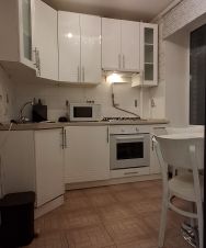 В квартире сделан евроремонт, что создает современную и комфортную атмосферу. Планировка включает две комнаты: одна из которых спальня с 2-х спальной кроватью и тумбочкой, другая как гостинная-кухня, оборудована мебелью. На кухне есть все необходимое для приготовления и приема пищи. Ванная комната оснащена душевой кабиной. Для вашего удобства в квартире есть кондиционер, холодильник, посудомоечная и стиральная машины. Окна выходят во двор, поэтому в квартире тихо и спокойно. Также есть балкон застекленный, где можно наслаждаться свежим воздухом.
