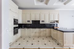 Планировка включает просторную кухню-гостиную с обеденной зоной, главную спальню, детскую(либо можно использовать под кабинет), гардеробную со встроенными шкафами, основной санузел с ванной и душевой, гостевой санузел в прихожей, кладовую.