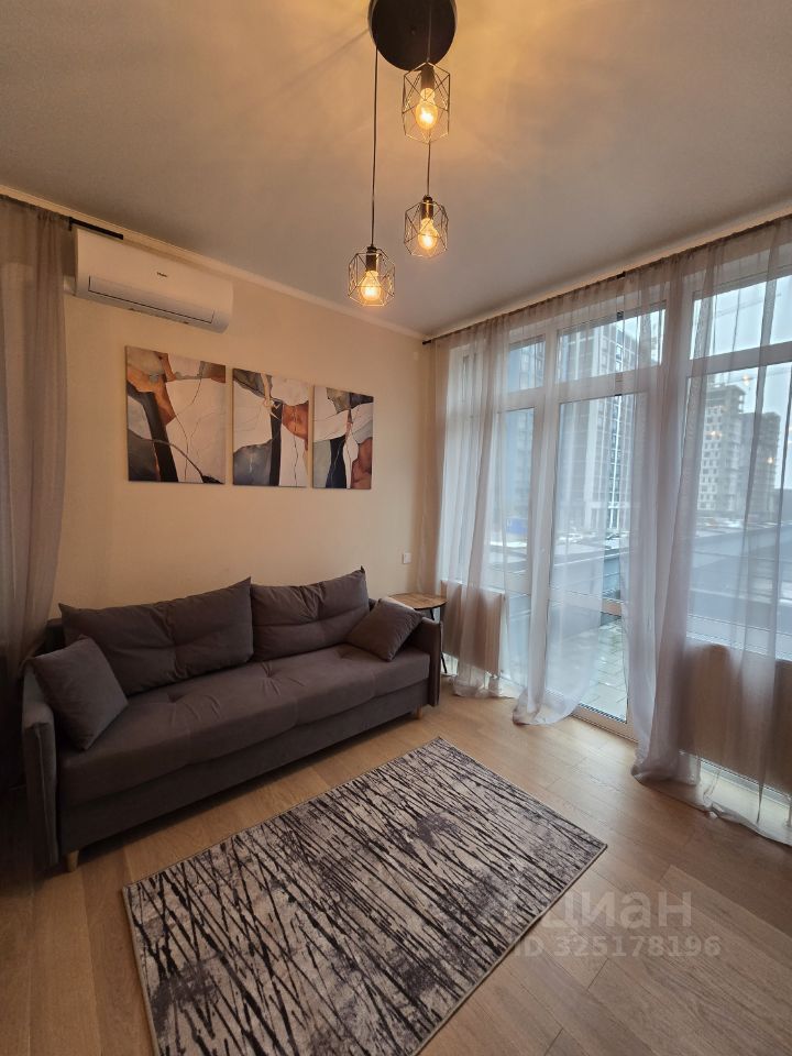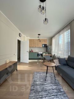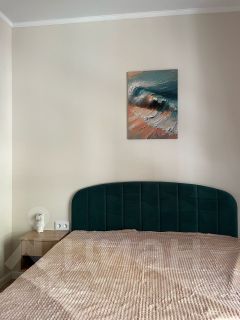 Квартира укомплектована всем необходимым: мебель и техника: двуспальная кровать с прикроватными тумбами, кухонный гарнитур со встроенной техникой (посудомоечная машина, духовой шкаф, микроволновая печь), варочная панель, холодильник, кондиционер и стиральная машина, стол с 4-мя стульями, диван, тумба под телевизор, кондиционер.