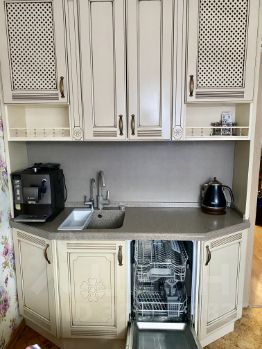 В квартире сделан качественный евроремонт. Высокие потолки 2.75 метра создают ощущение простора. Квартира полностью меблирована: удобная мебель на кухне и в комнате. Из техники есть холодильник, посудомоечная и стиральная машины, микроволновая печь, телевизор на кухне, кофе машина, роутер для интернета. Санузел совмещённый, с ванной. Окна выходят как на улицу, так и во двор, поэтому в квартире всегда светло и уютно.