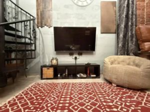 На нижнем уровне кухня, лаунж зона с большим телевизором, гостевой санузел. На верхнем спальня и санузел с душем.