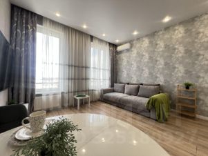 Сдаётся стильная студия с дизайнерским ремонтом в новом доме 2023 года постройки. Квартира располагается на 40-м этаже 41-этажного здания и занимает площадь 29 кв. м. Просторные окна выходят на улицу, а высота потолков в 3,2 метра добавляет ощущение объёма и света. В квартире есть всё необходимое для комфортной жизни, включая совмещённый санузел с душевой кабиной.