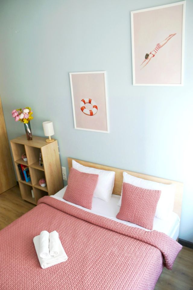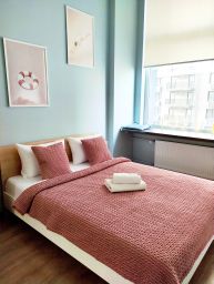 Имеется всё необходимое для комфортного проживания: современная мебель - одна двуспальные кровать с двуспальный матрас; бытовая техника - телевизор, холодильник, микроволновая печь, электрическая плита, электрический чайник, стиральная машина, гладильная доска/сушильная доска, фен, утюг; укомплектованная кухонная зона - столовые приборы, посуда, чай /кофе/сахар/масло; чистое постельное бельё, полотенца, средства личной гигиены; быстрый и стабильный Wi-Fi; цифровое ТВ.
