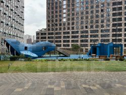 В комплексе торговый центр с магазинами, кафе, пунктами доставки и фитнес-центром.