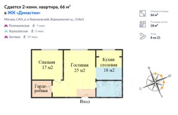 Без комиссии. Предлагается замечательная квартира в одном из лучших, комфортабельных, комфортных ЖК Москвы Династия. ЖК с большой благоустроенной, огороженной территорией и подземным паркингом. Круглосуточная охрана и видеонаблюдение, система круглосуточных консьержей. На территории детская, спортивная и прогулочная площадки, есть беговая дорожка. Внутренний двор без машин. Жилой комплекс Династия признан победителем в номинации Лучшая архитектурно-градостроительная концепция жилого комплекса.