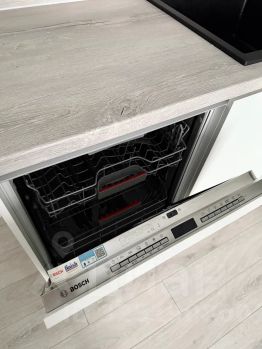 Бытовая техника: холодильник, варочная панель, телевизор, электрический чайник, микроволновая печь, стиральная машина, посудомоечная машина, кондиционер.