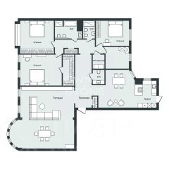 Авторская планировка: 5 комнат (4 спальни ), 3 санузла (2 совмещенных + 1 раздельный).