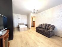Квартира с евроремонтом, полностью готова к проживанию. В просторной комнате есть вся необходимая мебель, а на кухне — современная техника, включая холодильник и стиральную машину. Санузел совмещенный, с установленной ванной. Высота потолков 2,48 метра, что создаёт ощущение пространства и света. Окна выходят во двор, поэтому в квартире тихо и спокойно. Также имеется балкон для дополнительного комфорта.