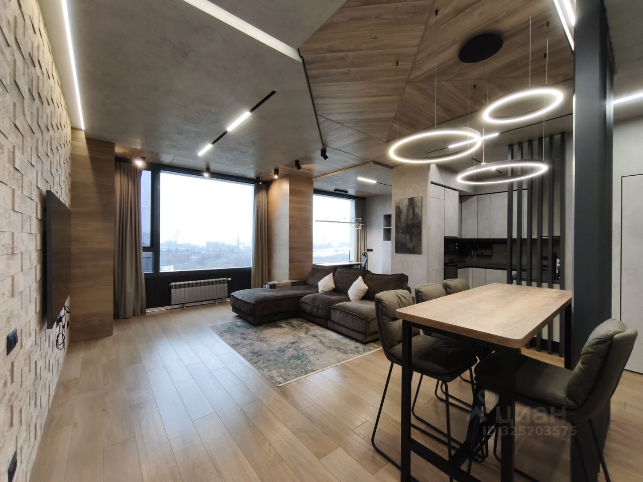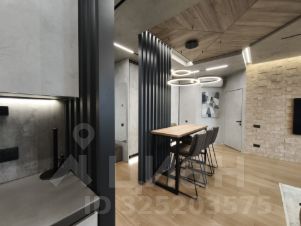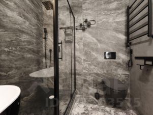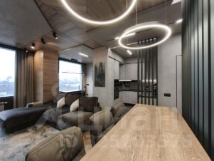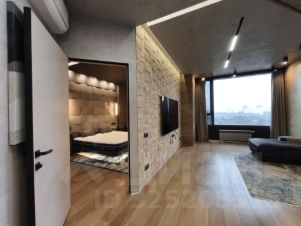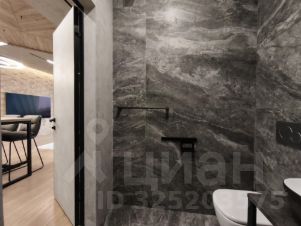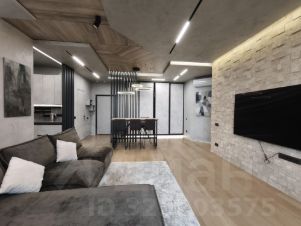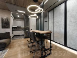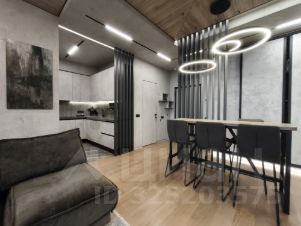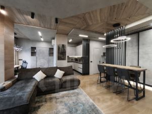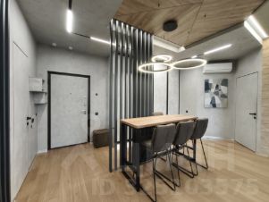 Студийная планировка: просторная кухня-гостиная ~ 50 м с выделенной рабочей зоной; изолированная спальная комната-"мастерспальня" с выходом в большой совмещённый санузел с отдельно стоящей ванной и душевой кабиной. Установлены кондиционеры. Вся бытовая техника премиального уровня: холодильник, телевизор, стиральная, посудомоечная машины. Подключён интернет.