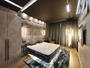 В интерьере квартиры все продумано до мельчайших деталей: качественная звукоизоляция, красивый, качественный, дорогой свет; удобная, качественная мягкая мебель (кресла и диваны), двуспальная кровать с ортопедическим матрасом; натуральное дерево и много других достоинств, которые можно оценить исключительно на просмотре.