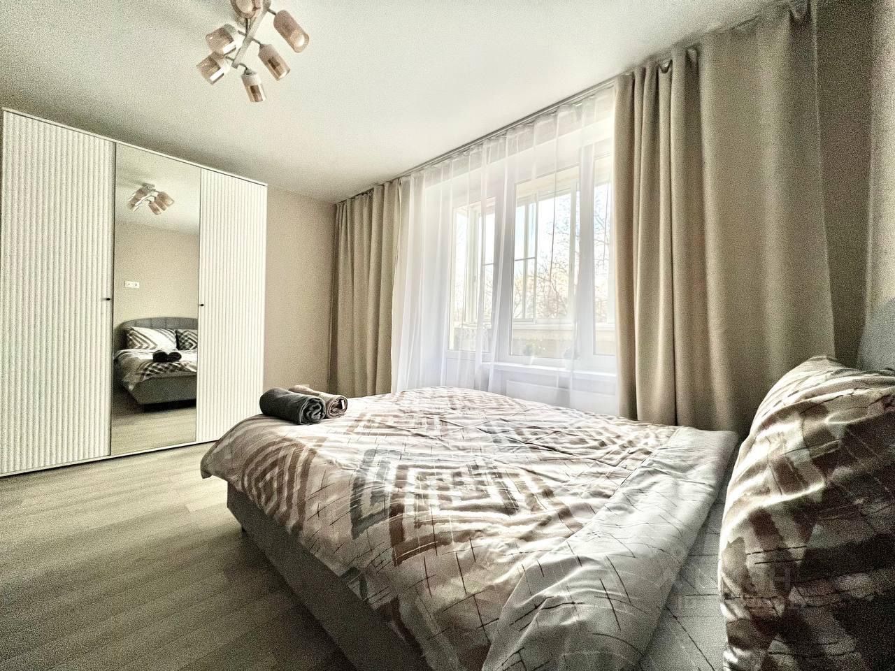 Квартира оборудована всем необходимым: СМАРТ ТВ, Wi-Fi, стиральная машина, холодильник, микроволновая печь, утюг и др.