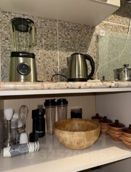 Квартира оснащена разнообразной техникой: холодильник, плита, стиральная машина, стационарный и погружной блендеры, чайник, кофемолка.