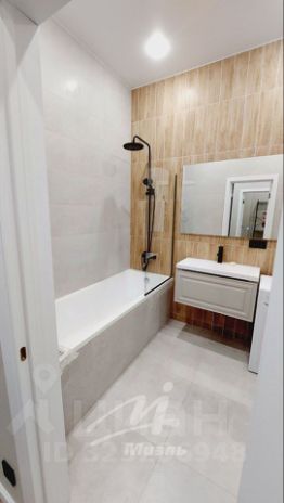 - Просторный совмещенный санузел, ванная со стеклянной душевой перегородкой, умывальник с большим зеркалом, стиральная машина.