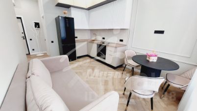 В квартире выполнен качественный современный ремонт. В отделке интерьера использованы только качественные материалы пастельных и светлых тонов, а также современное освещение, что придает квартире дополнительный уют и комфорт. Имеются большие панорамные окна с прекрасным видом, высокие потолки 3 м, квартира полностью укомплектована новой мебелью и техникой, есть кондиционер.