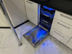 Светлая просторная кухня с эргономичным расположением мебели, оборудованная техникой Bosch. Имеет выход на застекленную лоджию с комодом для доп. хранения.