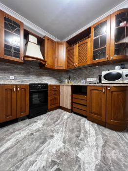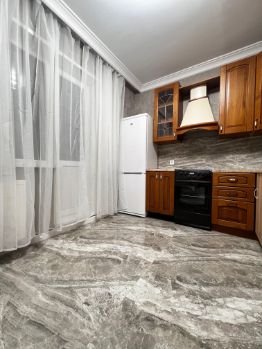 На кухне: встроенный гарнитур, холодильник, СВЧ печь, мелкая бытовая техника.