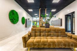 В здании для комфорта резидентов и гостей обустроена лаундж-зона с мягкими диванами и удобное лобби с ресепшеном, которые подчеркивают статусность проекта. Здесь вы сможете поработать, пообщаться с друзьями или просто отдохнуть. Также в комплексе предусмотрено место для хранения колясок и велосипедов, есть собственная автомобильная парковка.