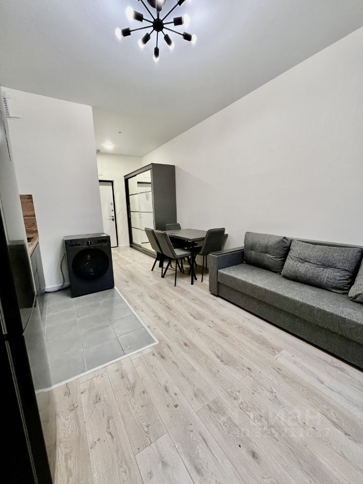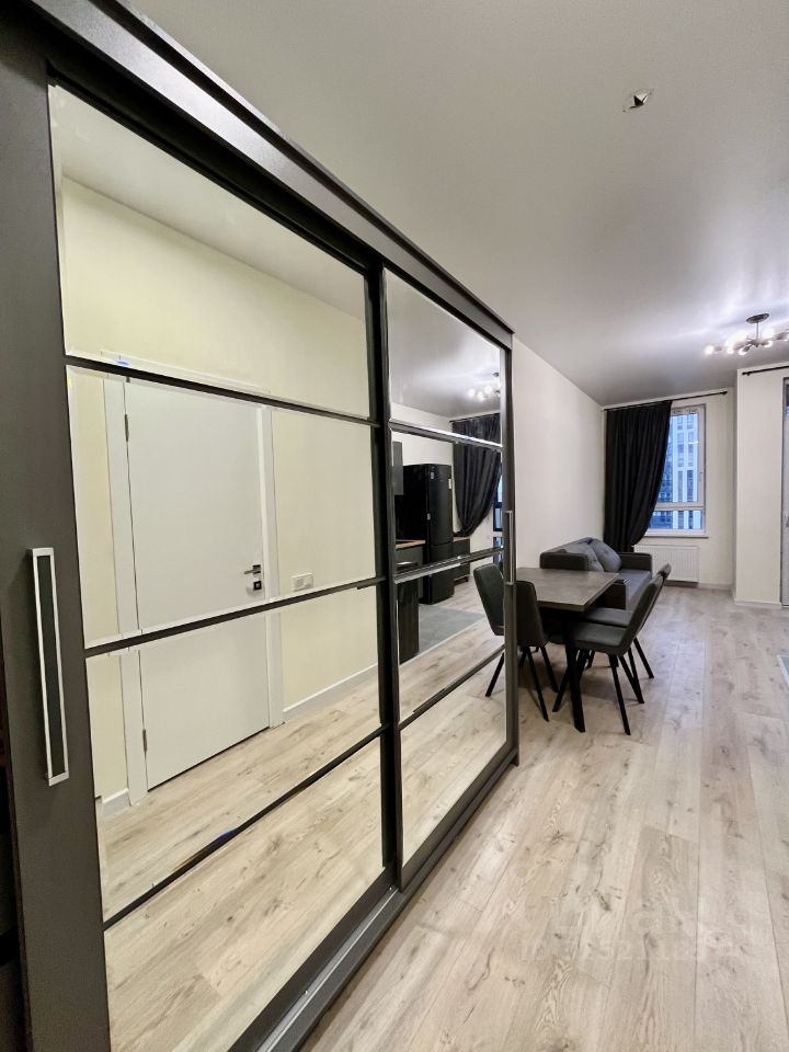 Уютная студия, в которой еще никто не жил. Всё — от мебели до техники — абсолютно новое и ждет своего первого жильца.