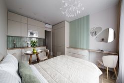 Много мест для хранения: вместительный шкаф в прихожей, два шкафа и комод в комнате, кровать с местом для хранения.