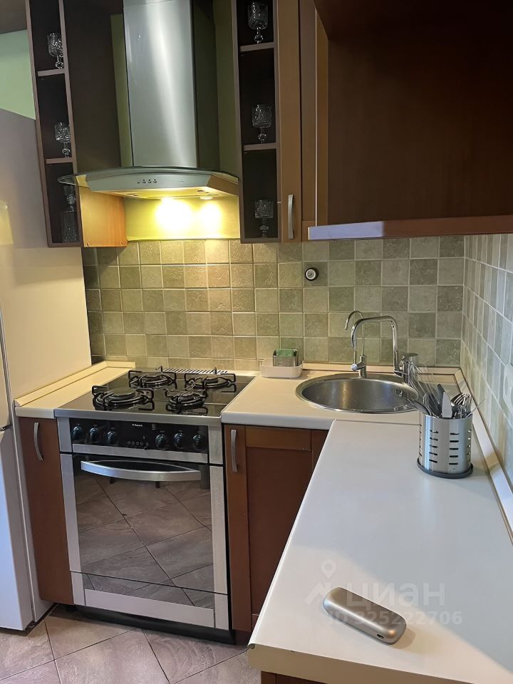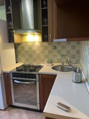 В квартире есть современная мебель на кухне и в комнате, а также вся необходимая техника: холодильник, телевизор и стиральная машина.