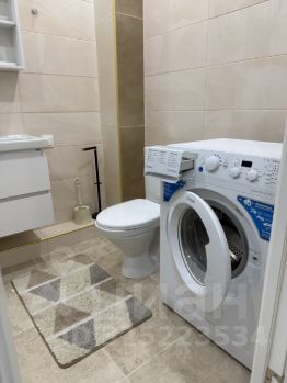 В ванной комнате установлены душевая кабина и стиральная машина.