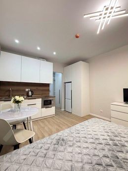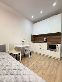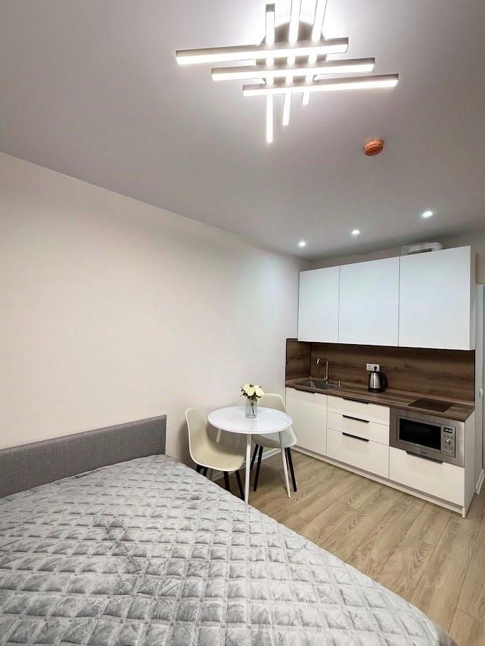 Сдается впервые студия в жилом комплексе Никольские Луга. Общая площадь 20 м2. Вся мебель и техника новая. кровать с подъемным механизмом. Сдается на длительный срок.