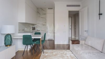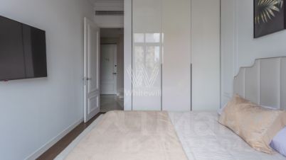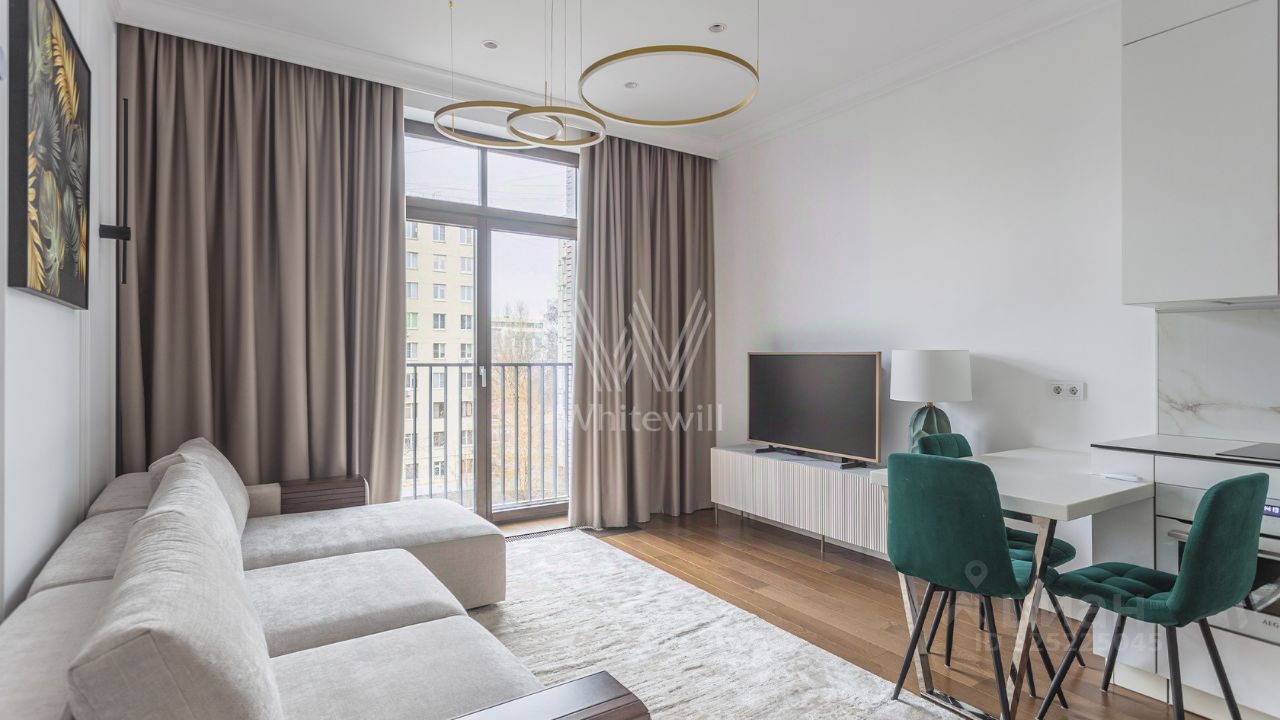 Квартира с 1 спальней общей площадью 43 м² в комплексе премиум-класса "Медный" в районе Якиманка. Панорамные окна наполняют помещения солнечным светом и теплом, открывая виды на оживлённую улицу. Интерьер оформлен в современном стиле: лаконичная мебель, эффектные светильники, картины с ненавязчивыми мотивами и текстиль в спокойных оттенках создают уютное пространство для жизни. Установлена техника, включая телевизор, холодильник, посудомоечную и стиральную машины, кондиционер. В паркинге можно дополнительно арендовать машино-место.