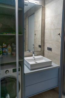 диван, кровать, посудомоечная машина, стиральная машина, телевизор, интернет, холодильник, индукционная варочная панель, духовка, вытяжка, фильтр обратного осмоса (не придется покупать питьевую воду).