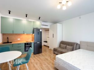 Сдаётся светлая квартира-студия с евроремонтом и совмещённым санузлом в ЖК Мичуринский Парк.