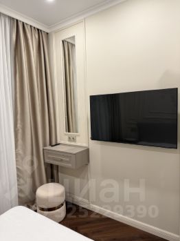 Уютная спальная - большая кровать (ортопедический матрас), полноценный шкаф для вещей, декоративные прикроватные тумбочки, изящный дамский столик с зеркалом, настенная плазма.