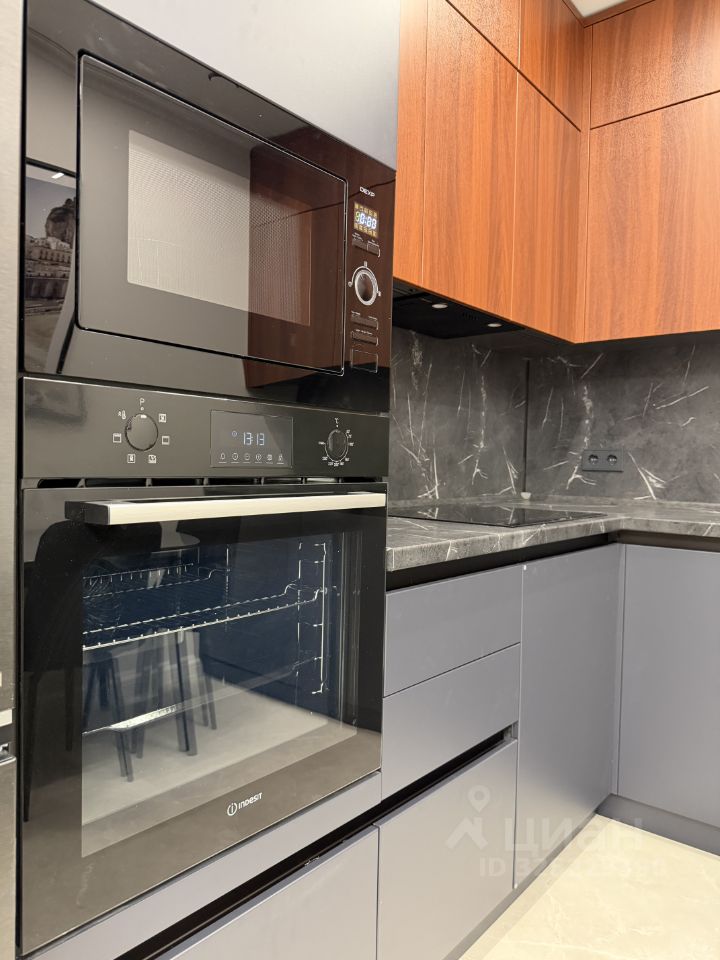 Просторная кухня - эргономичное рабочее пространство, комплектация современной техникой (индукционная панель Gorenje, духовой шкаф Indesit), огромное количество мест хранения, включая скрытые секции, полноценный обеденный стол.