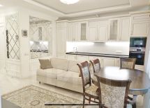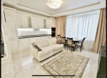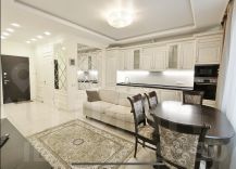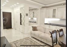 Установлена встроенная итальянская кухня из массива дерева, полностью оснащённая современной бытовой техникой: посудомоечная машина, холодильник, варочная панель, духовой шкаф, СВЧ, вытяжка. В квартире — два 4K ЖК-телевизора.