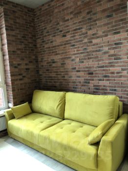 В квартире выполнен дизайнерский ремонт с современными решениями. Обстановка включает мебель как в комнате, так и на кухне. Из техники есть все необходимое для комфортного проживания: кондиционер, холодильник, телевизор и стиральная машина. Санузел совмещенный и оборудован душевой кабиной.