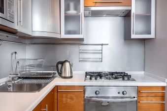 Кухня: полностью оборудована: холодильник, плита, духовка, микроволновка, чайник, и главное — посудомоечная машина! Полный комплект посуды для приготовления и сервировки. Комплимент от нас: чай, кофе, сахар, соль.