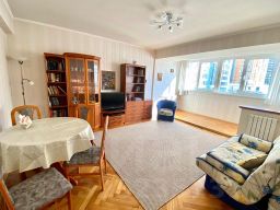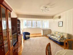 Кухня полностью оборудована мебелью и техникой: есть холодильник и стиральная машина. В комнатах также есть необходимая мебель, а для вашего комфорта установлены кондиционер и телевизор. Санузел совмещённый, с ванной. Две лоджии добавляют дополнительные возможности для отдыха и хранения вещей.