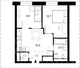 Продуманная авторская планировка: 2 изолированных жилых комнаты, спальня с рабочим местом и детская с рабочим местом, можно использовать в качестве кабинета, два санузла, один из которых можно использовать как кладовую.