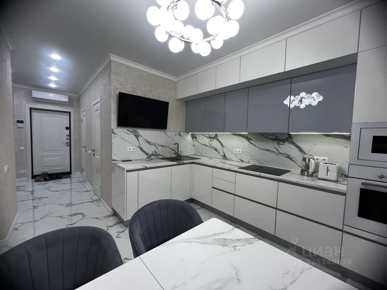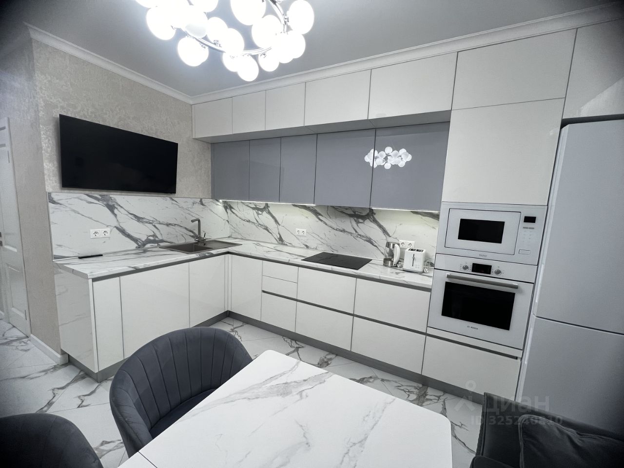 В квартире сделан современный ремонт с использованием качественных материалов. Оборудованна мебелью и бытовой техникой: встроенные шкафы в прихожей и спальнях; телевизоры Samsung; ПММ, вар. панель, духовой шкаф Bosch, холодильник и СВЧ Haier, система водоподготовки Atoll; стиральная машина с сушкой LG; сантехника Hansgrohe, ванна и инсталяция Roca. Сплит-система Electrolux. В кухне, коридоре и санузлах теплые полы Electrolux. Бойлер Electrolux на 80 л. Отлично спасает во время отключения горячей воды. На лоджии две системы хранения и морозильная камера.