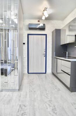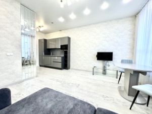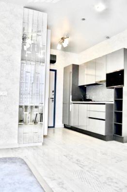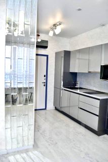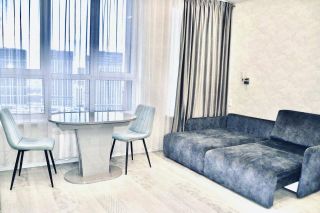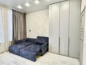 Студия полностью укомплектована всем необходимым для комфортного проживания: диван с ящиками для хранения, материал велюр/замша, спальное место 160*200 + канапе; 2 шкафа высотой 190 и шириной 210 и 150; кухонный гарнитур со встроенным холодильником, посудомоечной машиной и встроенной микроволновой печью длина 260; раздвижной стол с двумя велюровыми стульями, телевизионная тумба; Смарт ТВ; интернет; стиральная машина; кондиционер; IP домофония с видеосвязью от подъезда и от калитки, с функциями связи с консьержем, записью пропущенных вызовов, удалённым доступом и многое другое.