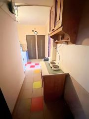 На кухне имеется вся бытовая техника: холодильник,плита, стиральная машинка,микроволновая печь).