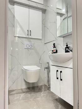 Вся необходимая бытовая техника: индукционная плита, микроволновка, холодильник, посудомоечная машина, чайник, стиральная машинка, утюг, телевизор Smart.