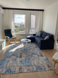 Общая площадь 70 кв.м, гостиная- 16 кв.м., спальня- 15 кв.м., кухня 15 кв.м, просторный коридор, два с/узла.